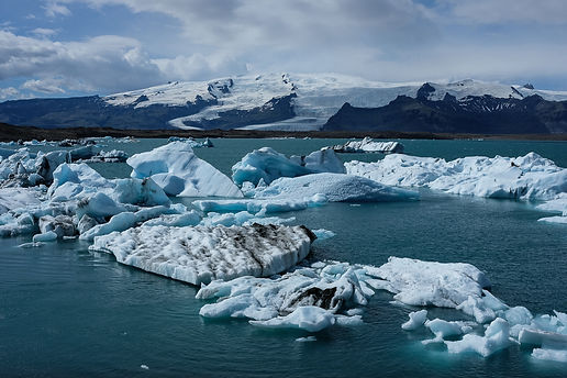 À Jökulsárlón, le glacier Falljökull a formé un lagon par sa fonte qui se jette dans l’océan. Le canal entre les deux est trop petit pour que les orques y passent, rendant le bassin un terrain de jeu sécuritaire pour les phoques. L’eau salée s'immisce elle aussi, et se mélange à l’eau douce de la glace fondue. Des icebergs flottent allègrement. Ils mettent de deux à cinq ans pour se liquéfier complètement, rongés par le sel par en-dessous. Régulièrement, il se retournent pour découvrir leur partie d’un bleu ciel translucide qui blanchit en une vingtaine d’heure. On a de la chance, on voit une de ces beautés de la nature.